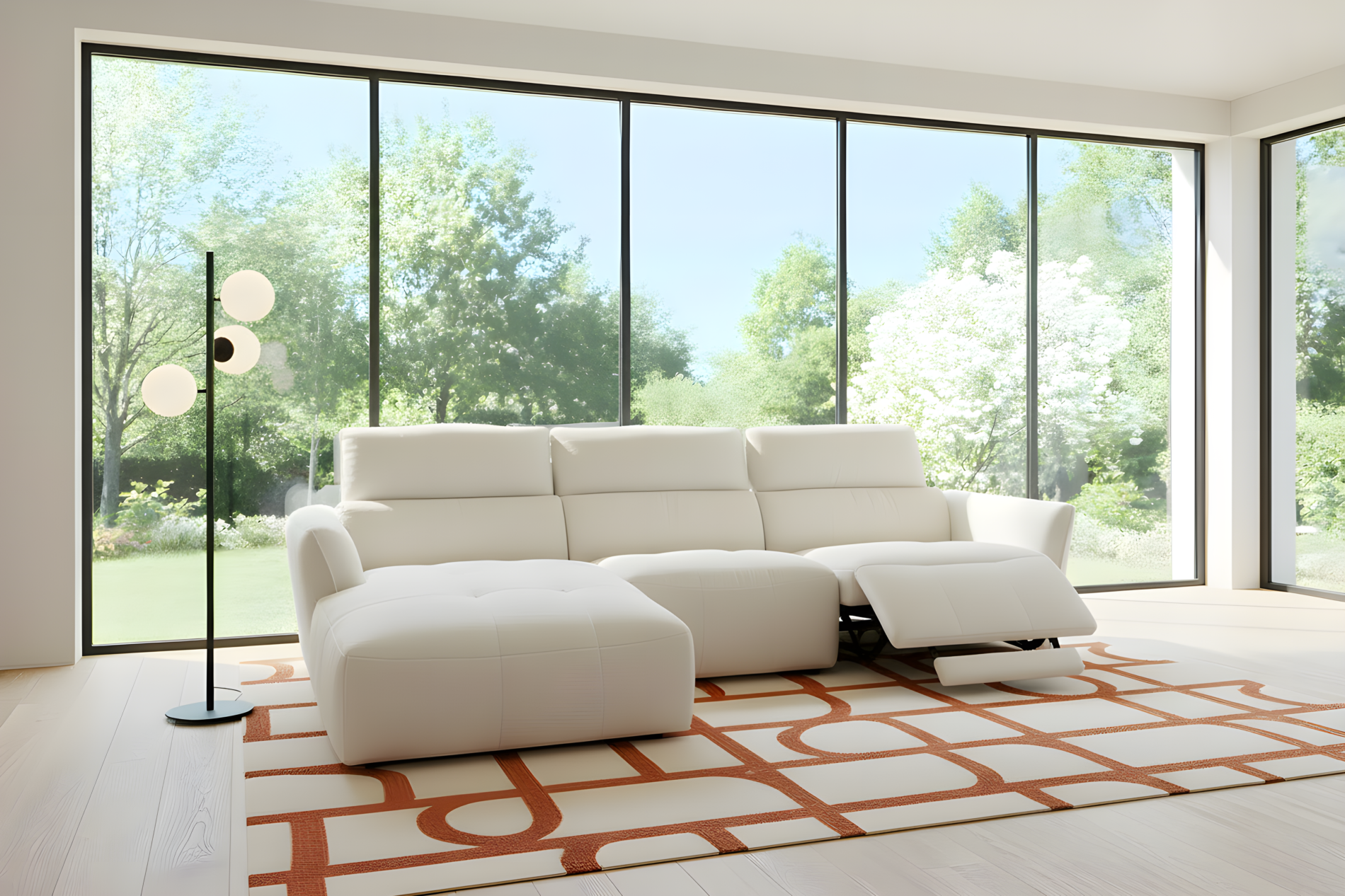 Équipé d’une double motorisation électrique, il offre une personnalisation complète : un moteur pour le repose-pieds, soulageant les jambes, et un second pour les têtières télescopiques intelligentes, qui s’élèvent et s’inclinent pour épouser parfaitement les cervicales.